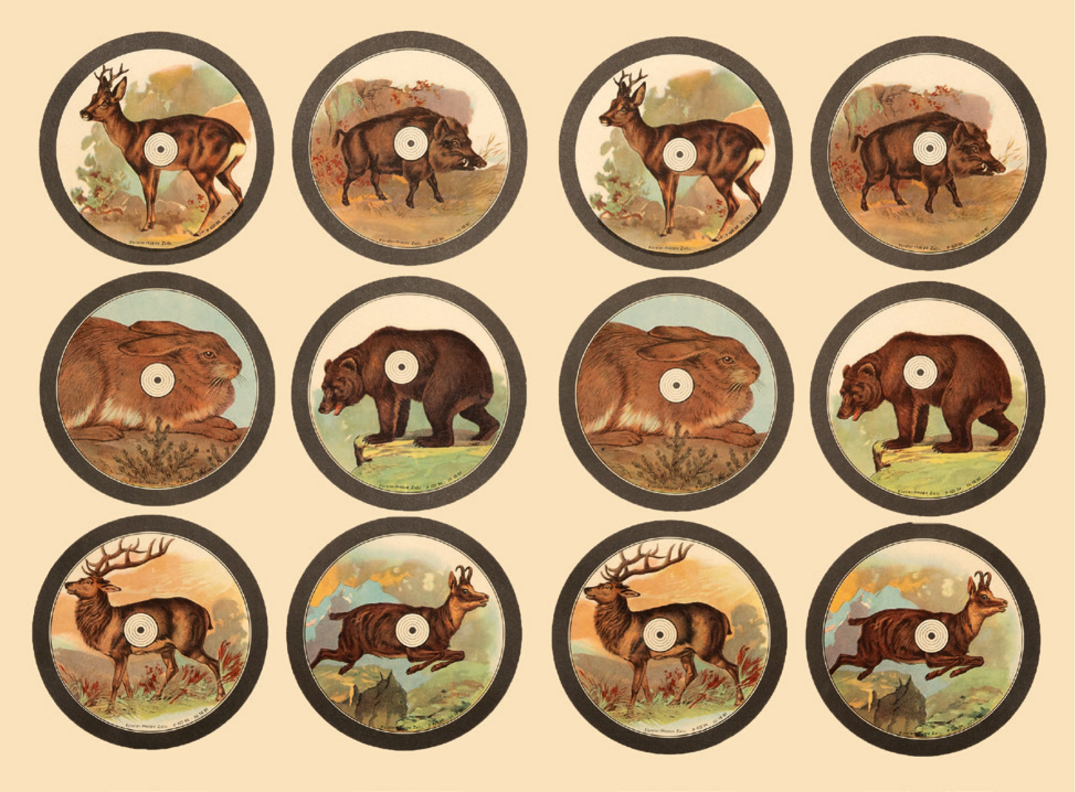 (um Missverständnisse zu vermeiden - es handelt sich bei den "Schützenscheiben-Faksimile" um einen Bogen Papier (Poster mit 12 Motiven) wie in der Anzeige abgebildet im Format 61 x 43 cm)