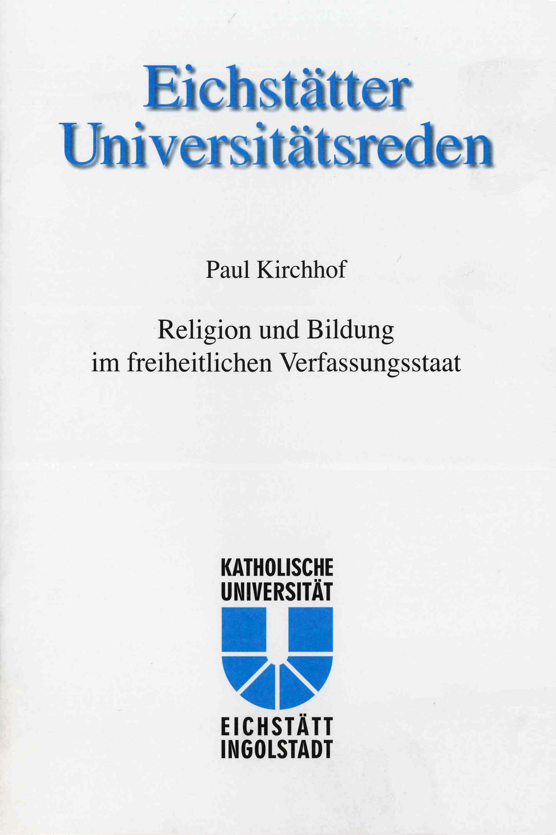 Religion und Bildung im freiheitlichen Verfassungsstaat Die vorliegende Eichstätter Universitätsrede ist als Festvortrag im Rahmen einer akademischen Feier aus Anlass der Pensionierung von Prof. Dr. Engelbert Groß, Ordinarius für Didaktik der Religionslehre, für Katechetik und Religionspädagogik in der Theologischen Fakultät, am 10. Mai 2004 gehalten worden.